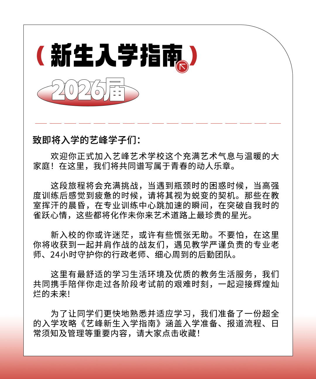 欢迎你,新同学!艺峰艺术2026届新生入学指南请查收~