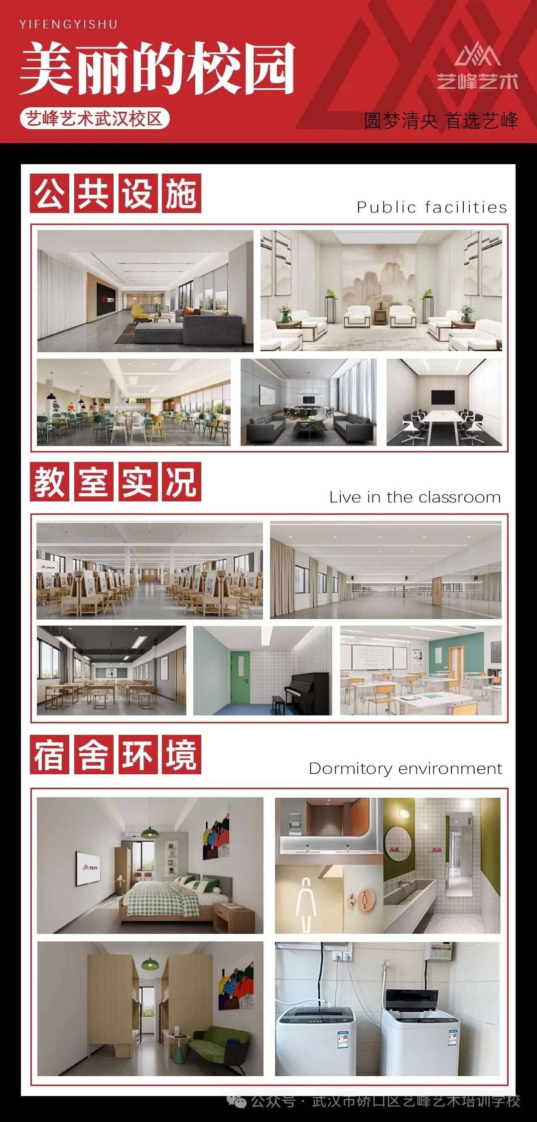 校区建筑面积7600余平方米,绿化环境优雅舒适,交通便利,文化氛围浓厚;校园实行全封闭式寄宿管理,打造吃住学一体化集训校区,校区环境优良,设施齐全,教学体系完善,管理制度严谨,可同时容纳700人考前集训;教学区域配备多间专业课教室、文化课与设计课教室、琴房、舞蹈房、开水房等办学设施齐全,为学生和教师提供良好的教学环境;集美术、音乐、书法、传媒、舞蹈教学、文化教学、美术展览、艺术沙龙、休闲体育、餐饮停车、智能办公等一体化学习氛围,为学子们筑梦打造*美校园,让每一位在理想路上扬帆远航的学子们,抬头就能看见属于自己的一片天空。
