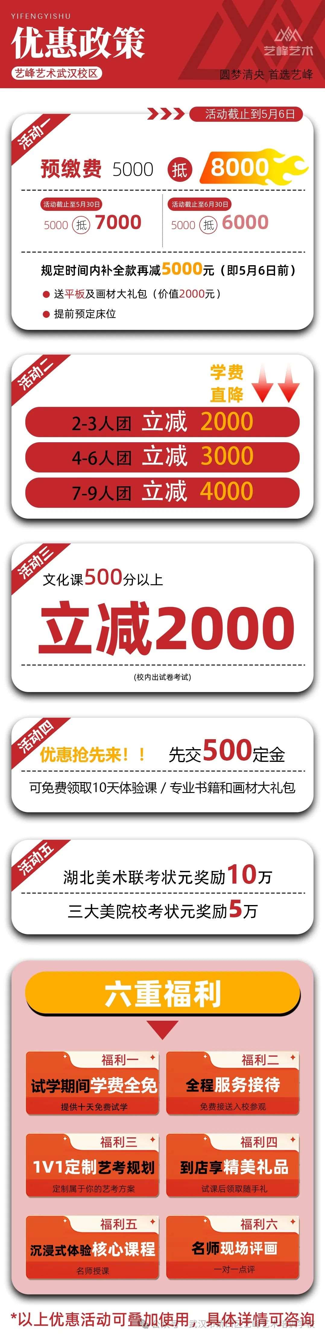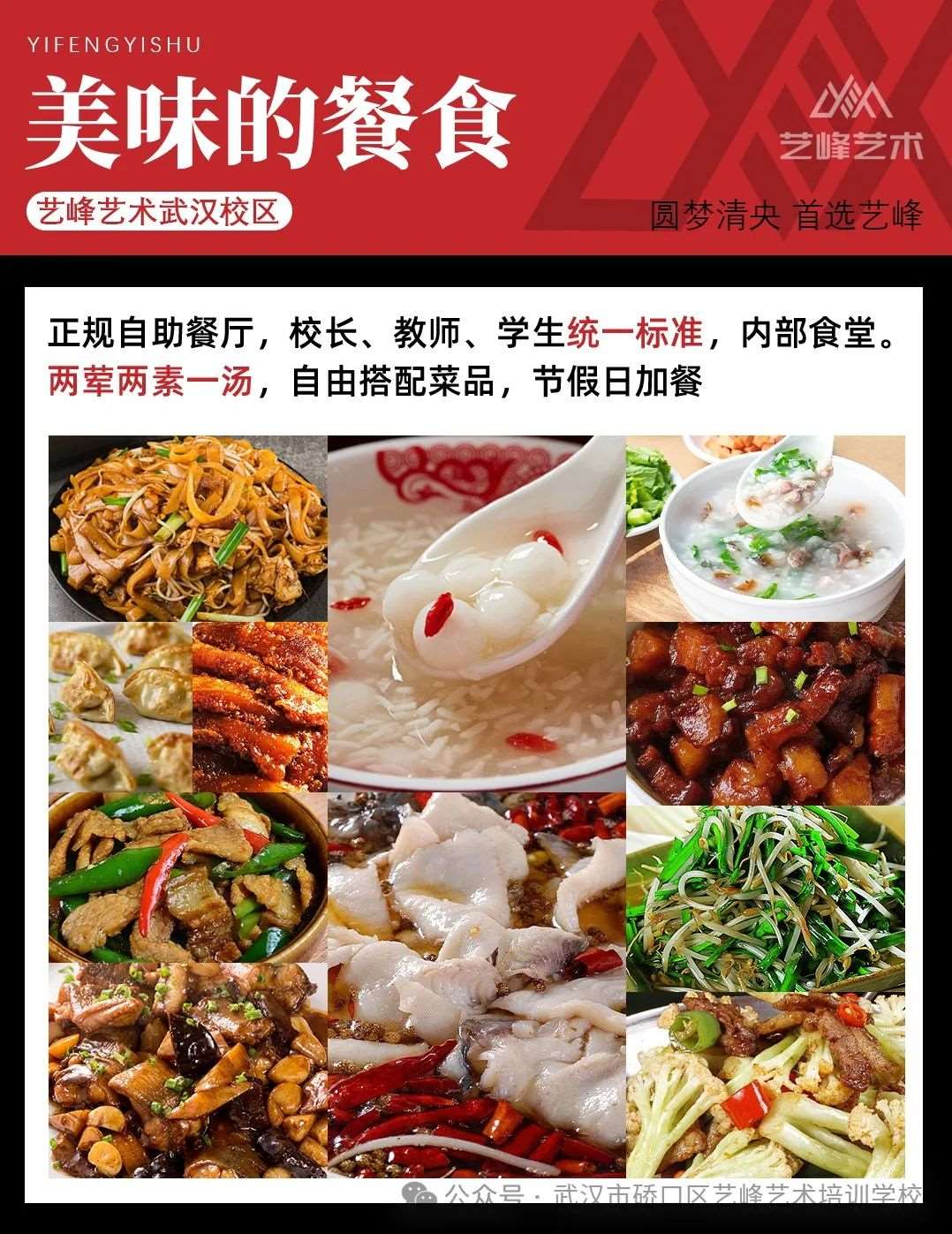 艺峰艺术学校是经武汉市硚口区文旅局批准的正规专业艺术民办学校,针对学生们的不同备考需求设置了艺术高考教育、中高考文化辅导、专升本、考研辅导、青少年艺术教育、师资培训等多样化的教学班型,招生类型囊括备考艺术生、高考复读生以及艺术类兴趣生三大类,为学生们的艺考道路增加更多优势与助力!