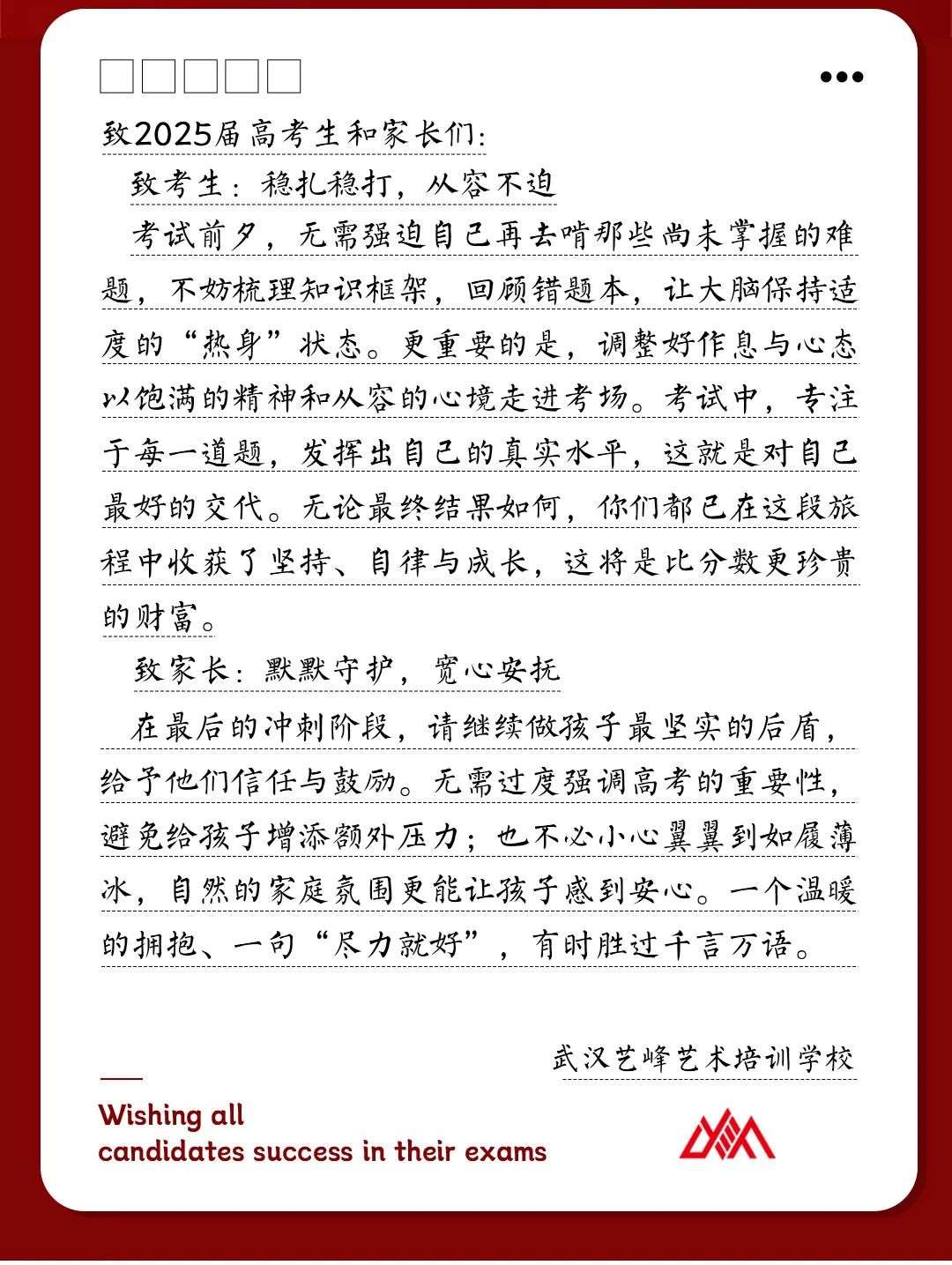 妙笔生花,书写佳绩 | 2025年高考温馨提示