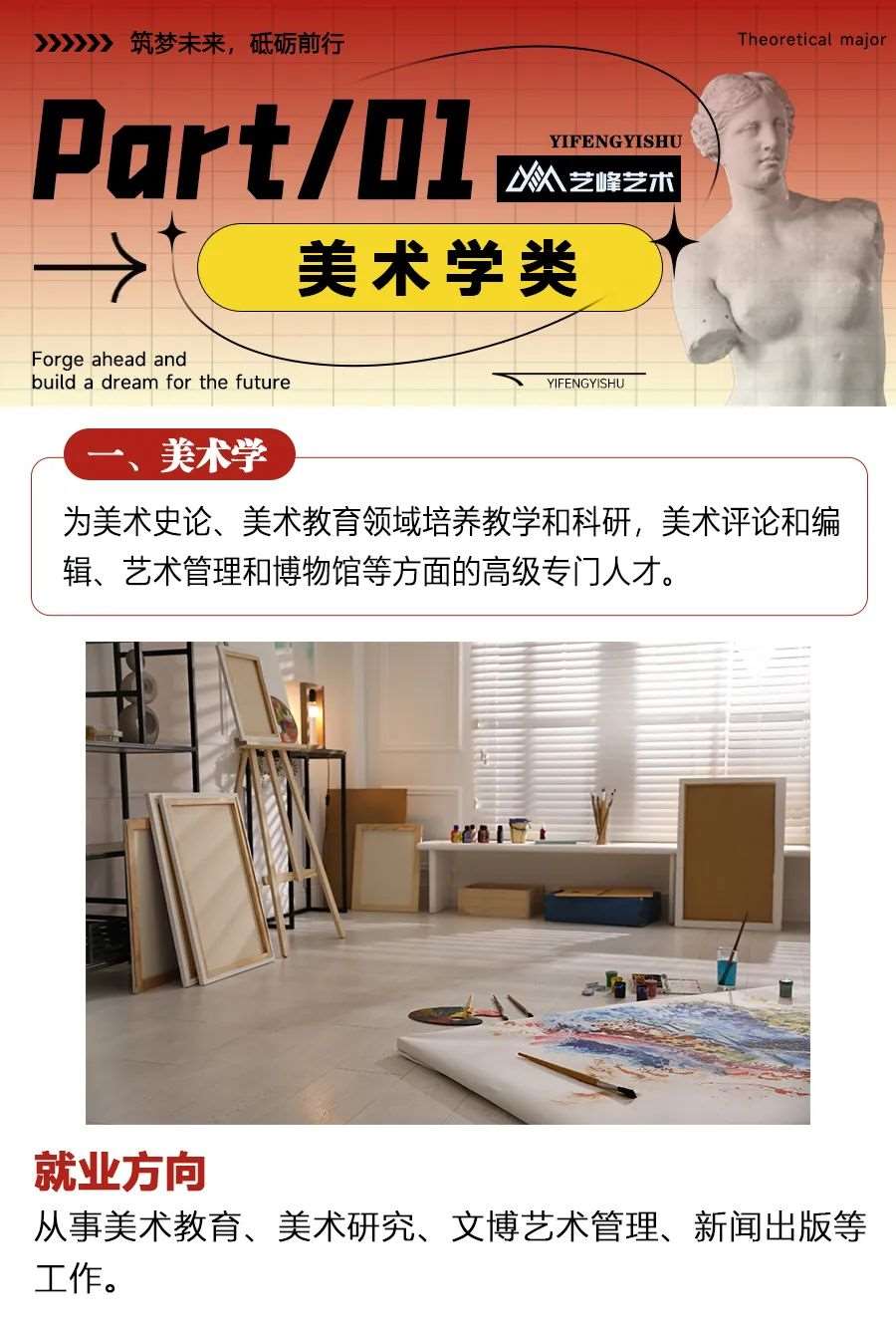 总共可以分为三大类:美术学类、设计学类、戏剧与影视学类(包含25年新增专业)