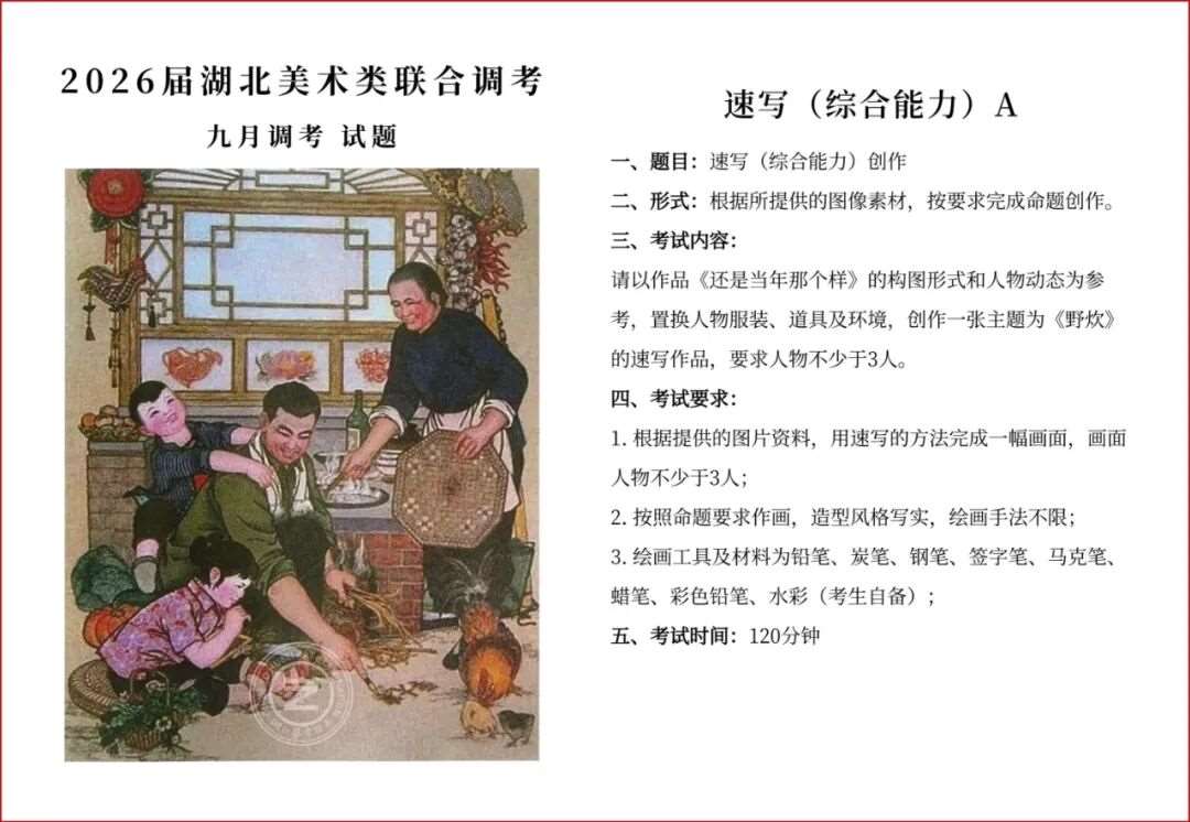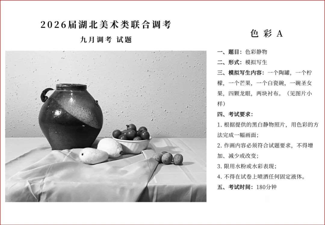 2026届湖北美术类9月调考-摸底检测(附:模考考试时间)