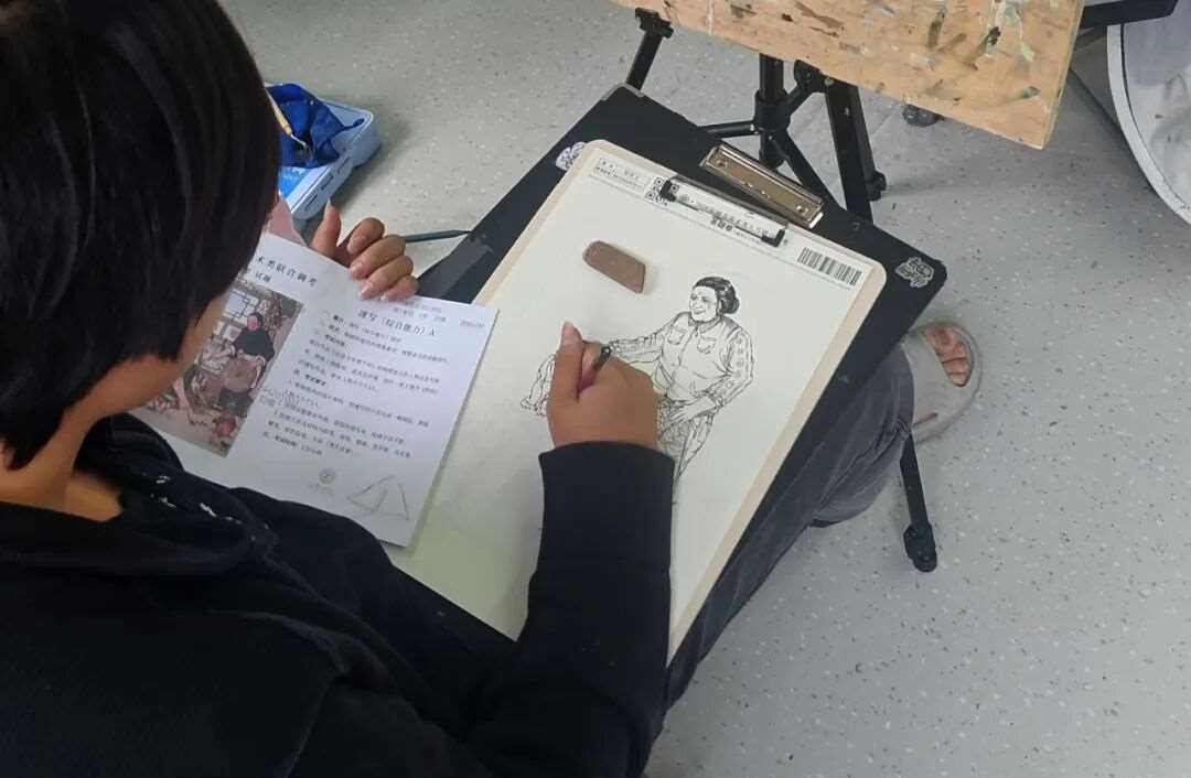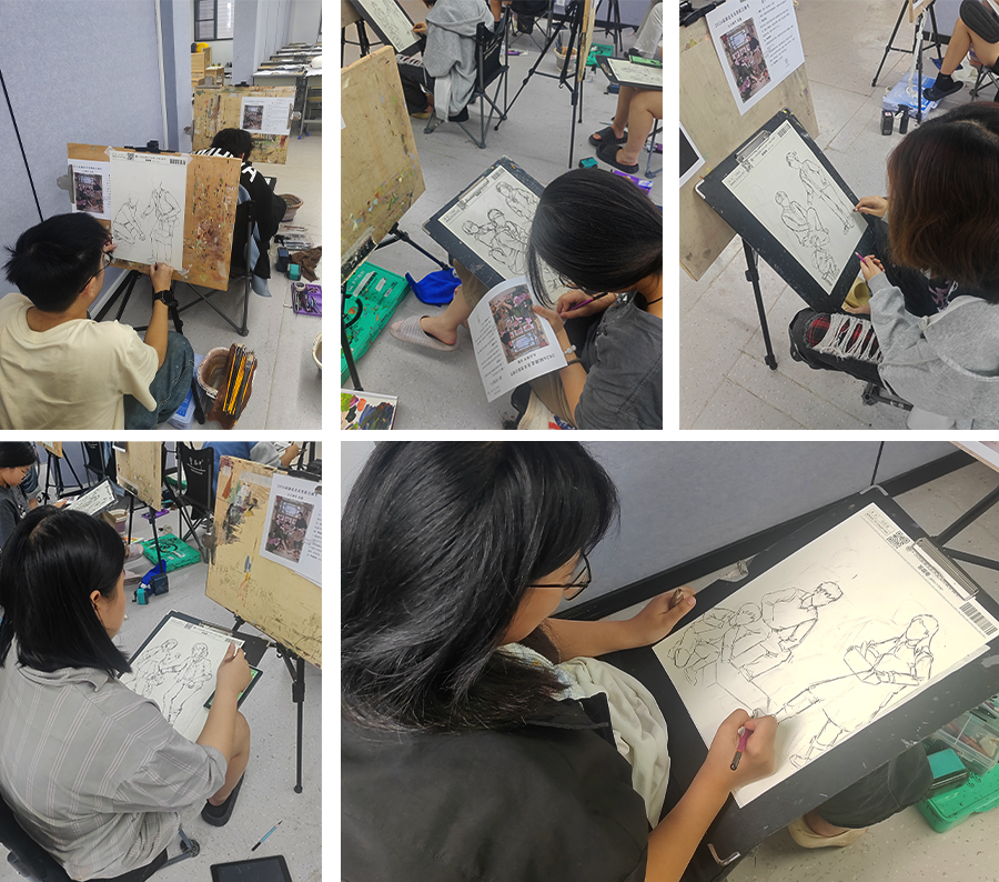 请以作品《还是当年那个样》的构图形式和人物动态为参考,置换人物服装、道具及环境,创作一张主题为《野炊》的速写作品,要求人物不少于3人,考试时间:120分钟。 |