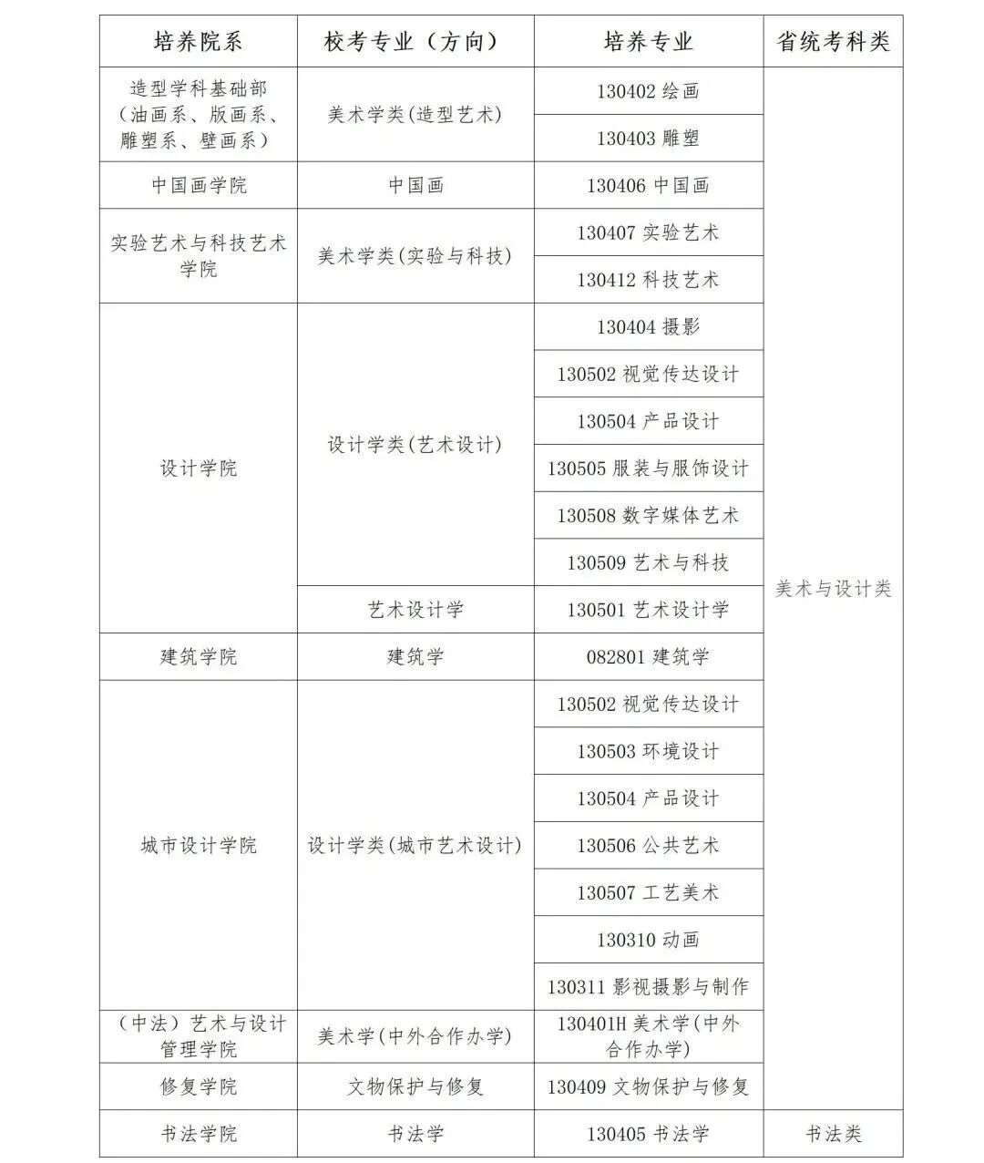 中央美术学院2026年本科招生校考专业(方向)省统考科类对应要求发布