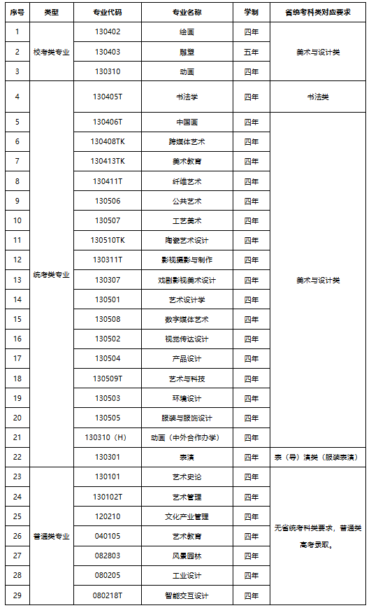 按教育部特殊类型招生工作要求,湖北美术学院各专业对应省级统考科类情况如下: